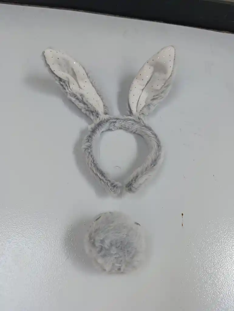 Tierno set de conejito compuesto por una diadema con orejitas grises y una esponjosa colita. Perfecto para fiestas, disfraces, presentaciones escolares o sesiones de fotos. Suave al tacto y cómodo de usar, ideal para un look adorable y divertido. 🤍✨