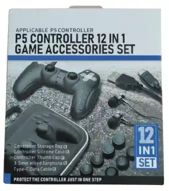 SET DE ACCESORIOS PARA PROTECCION DEL CONTROL PS5. ESTE SET CONTIENE: 1 ESTUCHE VIAJERO CON CREMALLERA 1 FUNDA O FORRO EN SILICONA ANTIDESLIZANTE 1 AUDIFONOS 1 CABLE DE CARGA Y DATOS 4 TUMBS PARA LAS PALANCAS ( PAR) PRODUCTO DE ECXELENTE CALIDAD