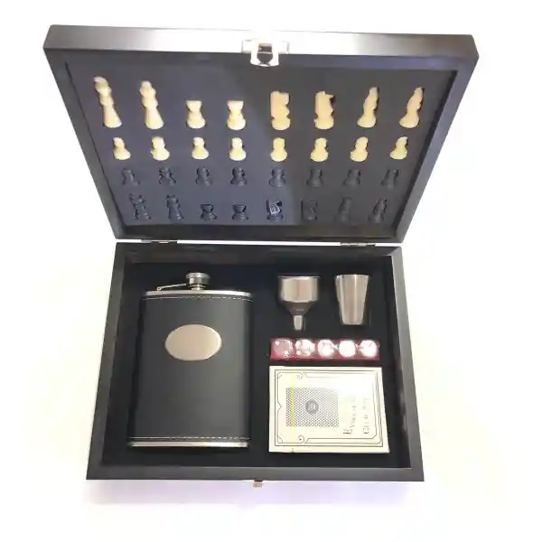 Kit de Whiskera de 7 piezas con estuche y juego de ajedrez: Encanto y elegancia es la definición para esta caja Whiskera de madera con piezas de ajedrez. Material robusto y finamente acabado. El conjunto, hecho de acero inoxidable de alta calidad, tiene un diseño elegante y ultramoderno, proporcionando una integración perfecta en cualquier entorno. Debido a que esta hecho de acero inoxidable, un material neutro e inodoro, no hay interferencia con el aroma y