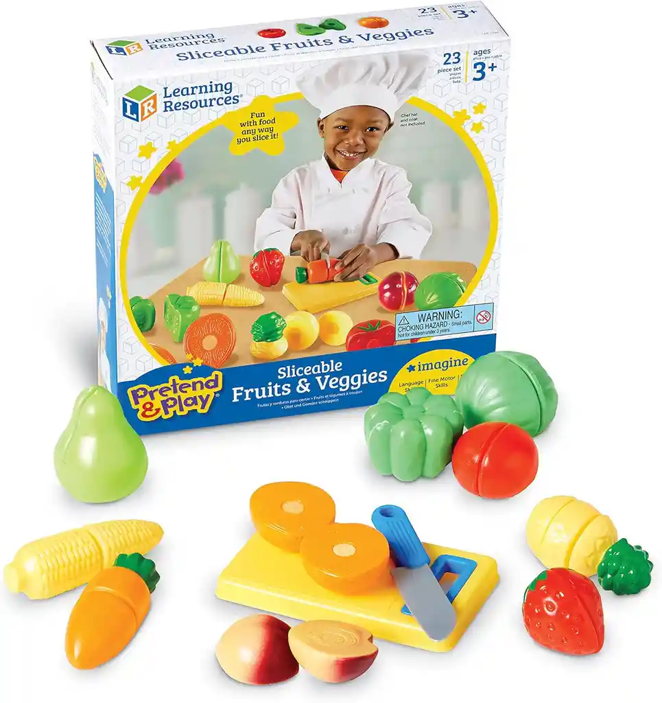 Empaque de regalo y tarjeta sin costo adicional, escríbenos al finalizar la compra. 3 años+ Explora el mundo de la cocina y desarrolla habilidades motoras finas con nuestro emocionante set de corte de alimentos. Une los trozos de comida y luego "córtalos" con el cuchillo y la tabla de cortar incluidos. Este juguete no solo ofrece una experiencia táctil y visual, sino que también promueve el juego imaginativo y el desarrollo de habilidades clave. Este set no solo es una excelente manera de introducir a los niños en la preparación de alimentos, sino que también fomenta conceptos básicos saludables al imitar prácticas de comer frutas y verduras. Además, las oportunidades de aprendizaje matemático surgen al explorar cómo las partes individuales se conectan para formar un todo. Además, el juego con las piezas unidas desarrolla habilidades motoras finas, ya que los niños utilizan ambas manos para sostener firmemente la fruta y el cuchillo imaginario para cortar las diferentes frutas y verduras del conjunto. Con una variedad de opciones, desde fresas hasta zanahorias, este conjunto de corte de alimentos proporciona una experiencia educativa y lúdica para pequeños chefs en ciernes. Tamaño: 27 x 27 x 6cm