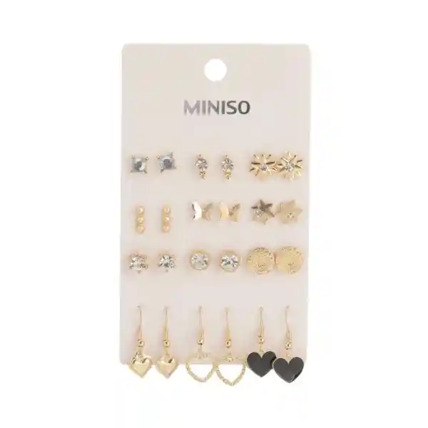 Set Miniso Contiene 12 Pares. Tiene Para ti Estos Lindos y Exclusivos Aretes de Diferentes Diseños ¡Perfectos Para Combinar tu Outfit Del Día a Día!.
