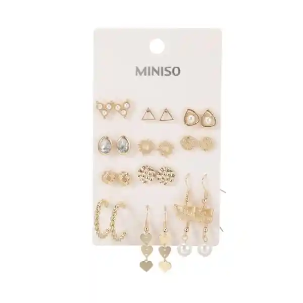 Set Miniso Contiene 12 Pares. Tiene Para ti Estos Lindos y Exclusivos Aretes de Diferentes Diseños ¡Perfectos Para Combinar tu Outfit Del Día a Día!.