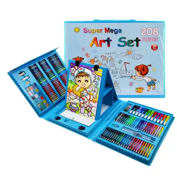 Set de Arte Completo 208 Piezas – La Herramienta Ideal para Inspirar Creatividad Este Set de Arte de 208 piezas está diseñado para despertar la imaginación y potenciar las habilidades creativas de los niños. Es perfecto tanto para principiantes como para pequeños artistas en desarrollo, proporcionando una experiencia completa para explorar distintas técnicas artísticas. Lo Que Hace Este Set Especial Amplia variedad de materiales: Incluye lápices de colores, marcadores, crayones, pasteles al óleo, acuarelas y pinceles, ofreciendo opciones para todo tipo de proyectos creativos. Caballete integrado: Ideal para dibujar y pintar cómodamente en cualquier lugar, convirtiendo el estuche en un estudio portátil. Diseño organizado y práctico: El estuche compacto y resistente permite mantener cada herramienta en su lugar, facilitando su transporte y uso. Beneficios para los Niños Promueve el desarrollo de la imaginación y la expresión artística. Ayuda a mejorar la coordinación y habilidades motoras finas. Proporciona horas de entretenimiento educativo y creativo. Ideal para Toda Ocasión Perfecto como regalo para cumpleaños, Navidad o simplemente para fomentar el amor por el arte. Adecuado para niños mayores de 3 años, es una excelente alternativa a las pantallas y una forma divertida de explorar su talento. Convierte cada dibujo o pintura en una obra maestra con este Set de Arte Completo 208 Piezas. La creatividad no tiene límites cuando cuentas con las herramientas adecuadas.