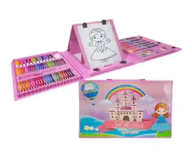 Medidas: 30 x 40.5 cm. 6.5 cm de ancho. Peso: 2.5 libras aprox. Color de la maleta: Azul Contenido: 24 oíl pastel, 35 clips, 24 crayones, 24 lápices de color, 24 marcadores, 12 mini marcadores, 18 colores de acuarela, 10 hojas de papel, 4 clip grandes o de cojinete, 1 lápiz, 1 pincel, 1 paleta, 1 contenedor de agua, 1 regla, 1 esponja, 1 sacapuntas, 1 borrador de nata, y 1 organizador. Set de Arte marca Grafitos para pintura, contiene 168 piezas, caja plástica y broche para cierre, espacios para organizar cada pieza. Los marcadores son en colores brillantes, Los crayones ofrecen una coloración más fácil y suave, los oíl pastel permiten la mezcla entre sí dando una buena apariencia a los dibujos, colores surtidos y en tamaños que se adecúan a la mano de cada niño. Las acuarelas se pueden mezclar entre y la fuerza del color dependerá de la cantidad de agua con la que se mezcle. Los otros productos son complementos para este hermoso set de arte. Productos no tóxicos. Ideal para uso escolar o en el hogar. Con este set brindaras un excelente regalo a niños o principiantes en el arte y el dibujo. Recomendado para niños mayores de 3 años y bajo la supervisión de un adulto ya que podrían ingerir partes del producto. En distribuidora SUESCUN encontraras este hermoso set y los complementos necesarios para realizar todo tipo de obras.
