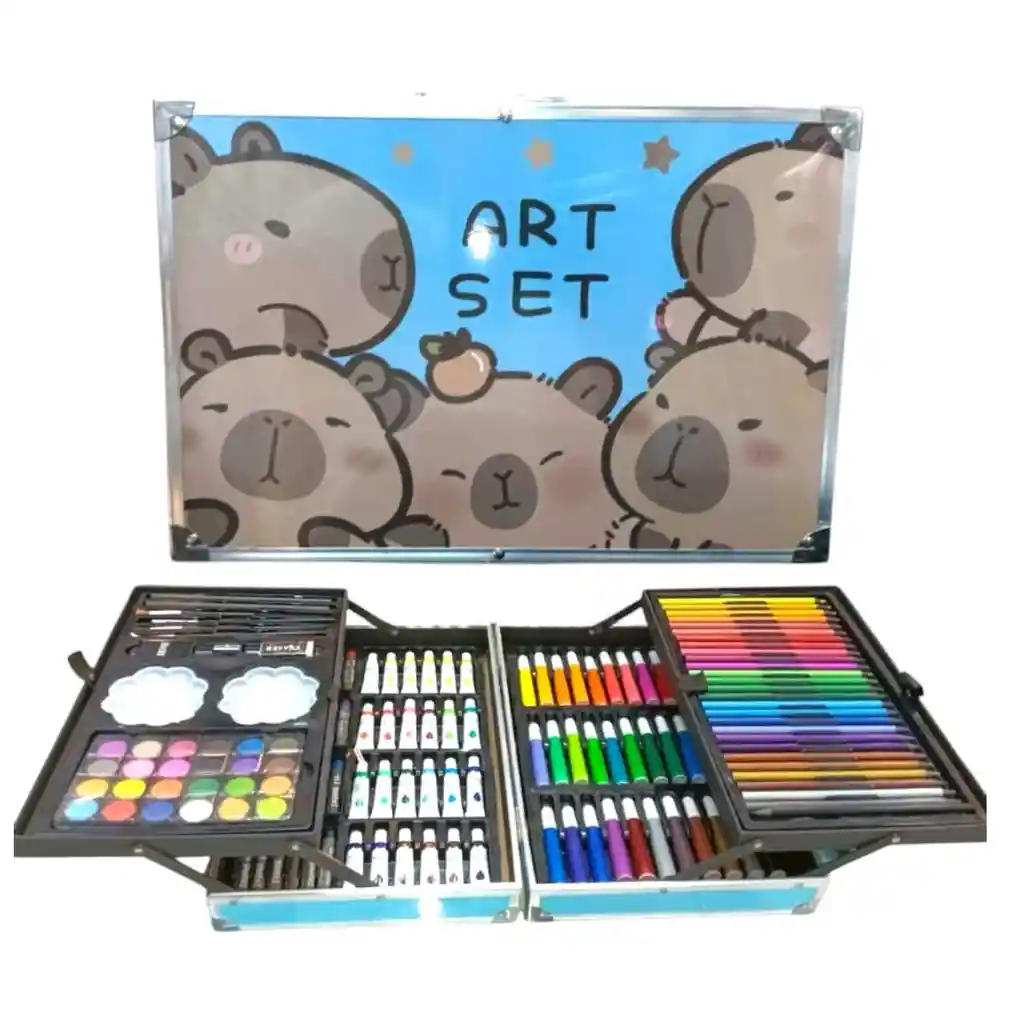 Cuentanos por favor si necesitas el diseño para niño o niña- Ayuda a desarrollar la creatividad, imaginación y habilidades de tu hijo con este set de arte. Su diseño en forma de maletín lo hace ideal para llevarlo a todos lados. El set incluye 145 artículos, desde pinturas al óleo y lápices hasta pinceles donde cada objeto tiene su propio lugar. Además, está fabricado con materiales resistentes y ligeros, con asa para el transporte y cierres de seguridad. Características: Edad: Niños mayores a 3 años (3+). Estuche de aluminio. Tamaño cerrado: 24x 8.5x 34.5 cm. Contiene: - 28 lápices de colores. - 33 mini marcadores. - 24 crayolas. - 24 pasteles al óleo. - 24 acuarelas. - 2 lápices de dibujo. - 4 pinceles de diferente tamaño. - 2 recipientes en forma de flor. - - 1 borrador. - 1 tajador. 1 goma plástica.