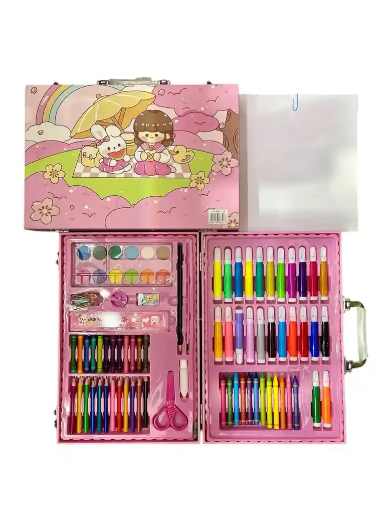 Estuche maletín de arte con diseño de astronauta y 126 piezas, para dibujar o pintar Características principales: * Estuche maletín de arte. * Diseño de astronauta. * piezas para dibujar y pintar. * Dimensiones: 30×21 cm. * Asa y seguros con efecto metálico. * Contiene colores, sacapuntas, borrador, marcadores, pinturas, crayolas, acuarelas, godete, pinceles. * Cada pieza en su compartimento. * Utiliza los materiales de acuerdo a tus necesidades de dibujo o pintura. * Guarda las piezas en sus respectivos compartimentos al terminar. Cuidados: * Mantén el estuche limpio y libre de suciedad. * Verifica que las piezas se encuentren en buen estado y en sus compartimentos. * Evita exponer el estuche a golpes, humedad o altas temperaturas. * Guarda el estuche en un lugar seguro cuando no esté en uso