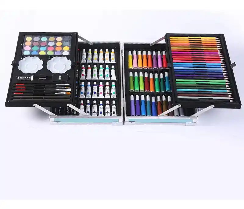 SET DE ARTE METALICO DE 145 PIEZAS CON ESTUCHE COLORES ACUARELAS PINTURAS MARCADORES PINCELES