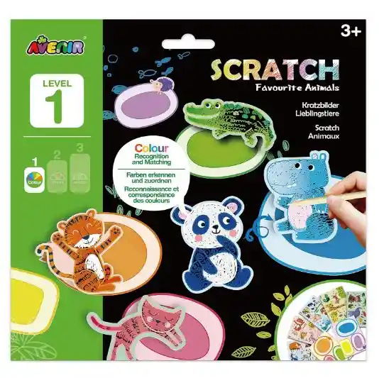 3 años+ ¡Sumérgete en el mundo del arte para rascar con colores increíblemente brillantes de Avenir que seguramente mantendrá a los más pequeños entretenidos y emocionados! Este kit único te invita a rascar el papel negro especial para revelar divertidos animales lindos. Pero la diversión no termina ahí, ¡porque también puedes ayudar a los animales a encontrar sus hogares del mismo color! Las manualidades se presentan en tres emocionantes niveles: el nivel uno se centra en los colores y los animales, el nivel dos se adentra en el fascinante mundo del océano y las formas, y el nivel tres lleva a los niños a una aventura de dinosaurios, donde se enfocan en los números del 0 al 9. Este kit no solo proporciona horas de entretenimiento, sino que también promueve el aprendizaje interactivo a través de la diversión creativa. Tamaño: 23 x 23 x 1cm