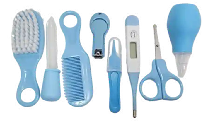 Cepillo Peinilla Corta uñas Tijeras Pinzas Termómetro Perita nasal dispensador de medicina