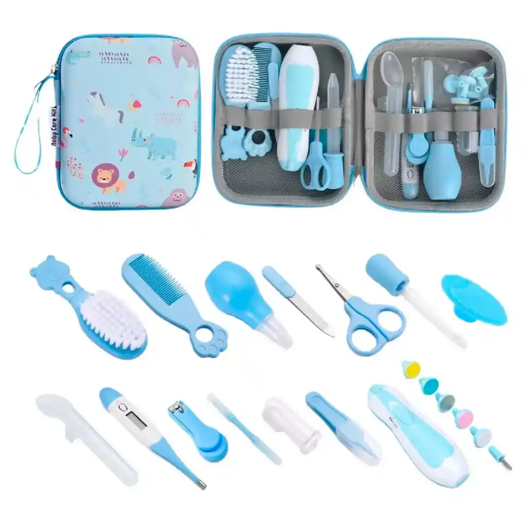Con el set de aseo para bebés de 20 piezas, los padres cuentan con una herramienta completa y segura para mantener la higiene y el bienestar de sus hijos en cualquier momento. Su diseño reúne lo esencial para el cuidado diario: tijeras de seguridad, cortaúñas adaptado, lima de uñas, cepillo de cerdas suaves, peine con puntas redondeadas, aspirador nasal, cuentagotas, termómetro digital y un cepillo dental para encías, además de otros accesorios complementarios. Todo el contenido se guarda en un estuche portátil con cierre, lo que garantiza orden, practicidad y facilidad de transporte. Ideal para el uso en casa o para llevar en viajes, este set se convierte en un indispensable del cuidado infantil desde los primeros días de vida del bebé. Especificaciones: 20 piezas incluidas para el cuidado integral del bebé. Herramientas seguras adaptadas a recién nacidos. Incluye termómetro digital y aspirador nasal. Estuche organizador portátil con cierre. Uso recomendado para recién nacidos en adelante. Nota de garantía: Garantía de 30 días por defectos de fábrica.