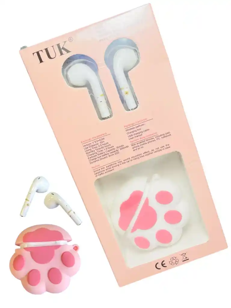 Set de auriculares Wireless Headset Lovely Cats Paw blanco rosa