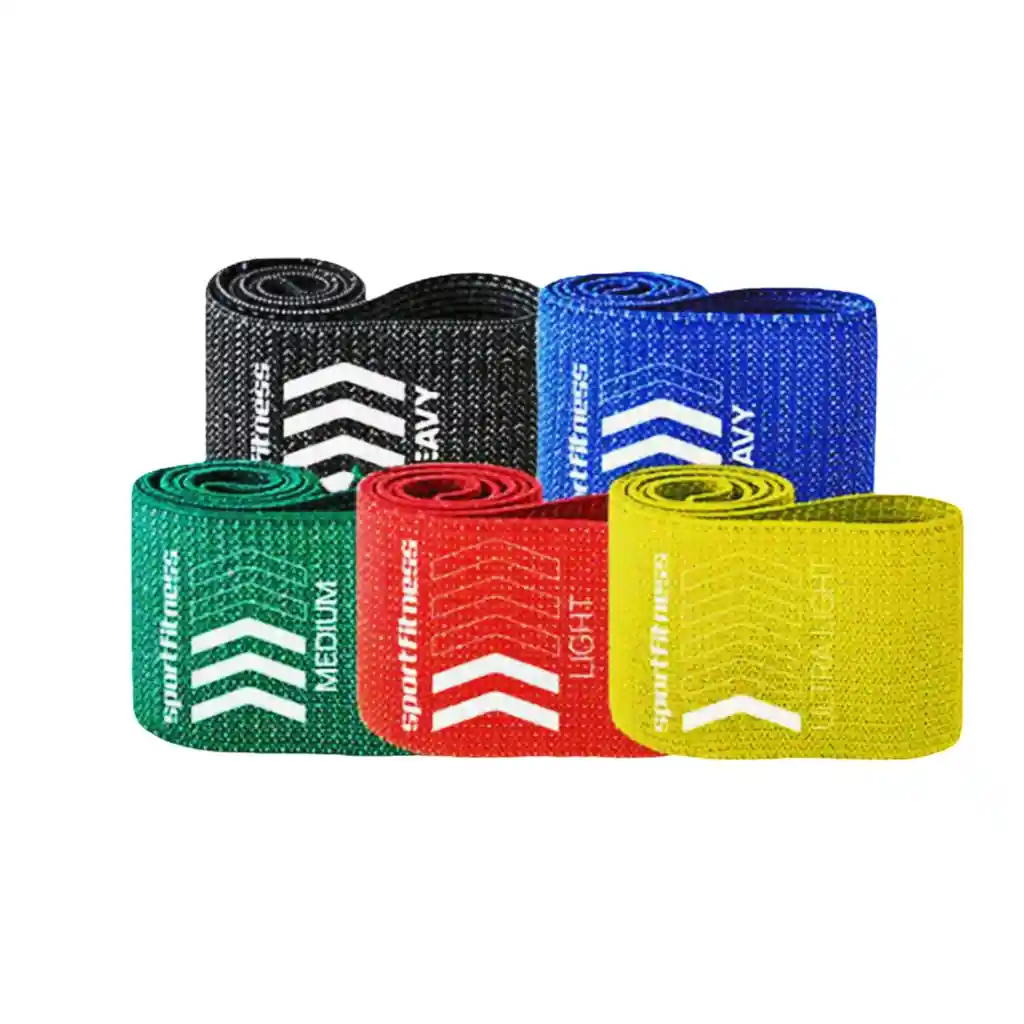 Set de 5 Bandas de Tela con Diferente Intensidad para Ejercicio - Sportfitness Transforma tu rutina de entrenamiento con el Set de 5 Bandas de Tela de Sportfitness, diseñadas para ofrecerte una amplia variedad de resistencias y niveles de intensidad. Este set incluye bandas con diferentes grados de dificultad, perfectas para adaptarse a tus necesidades y objetivos, ya sea para tonificar, fortalecer o aumentar la flexibilidad. Fabricadas con materiales de alta calidad, las bandas son resistentes, duraderas y cómodas de usar, ideales tanto para principiantes como para usuarios avanzados. Su diseño compacto y portátil permite llevarlas a cualquier lugar, para entrenar en casa, en el gimnasio o al aire libre. Estas bandas son perfectas para ejercicios de fuerza, pilates, yoga, estiramientos, rehabilitación o entrenamiento funcional, brindándote un entrenamiento completo y efectivo. ¡Mejora tu fuerza, flexibilidad y resistencia con el Set de 5 Bandas de Tela Sportfitness!
