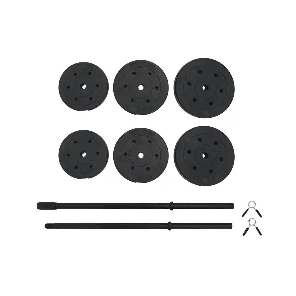 "Set De Barra y Pesas De Cemento (100LB) Entrena en casa con el set de barra y pesas de cemento (100lb) de sportfitness. Con discos de cemento de alta resistencia y barra incluida, este set es perfecto para rutinas de fuerza y acondicionamiento. Ideal para todo tipo de entrenamientos, te permite ajustar el peso y llevar tu rendimiento al siguiente nivel. Material: Acero y discos de cemento y recubierto en caucho Color: Negro Uso: Deportivo Medidas Largo de barra: 153.5 cm Largo de embolo: 24.5 cm 2 Discos 10 Lb diámetro: 26 cm, profundidad 5cm 2 Discos 15 Lb diámetro: 29 cm, profundidad 5.3 cm 2 Discos 25 Lb diámetro: 31.8 cm, profundidad 6 cm"