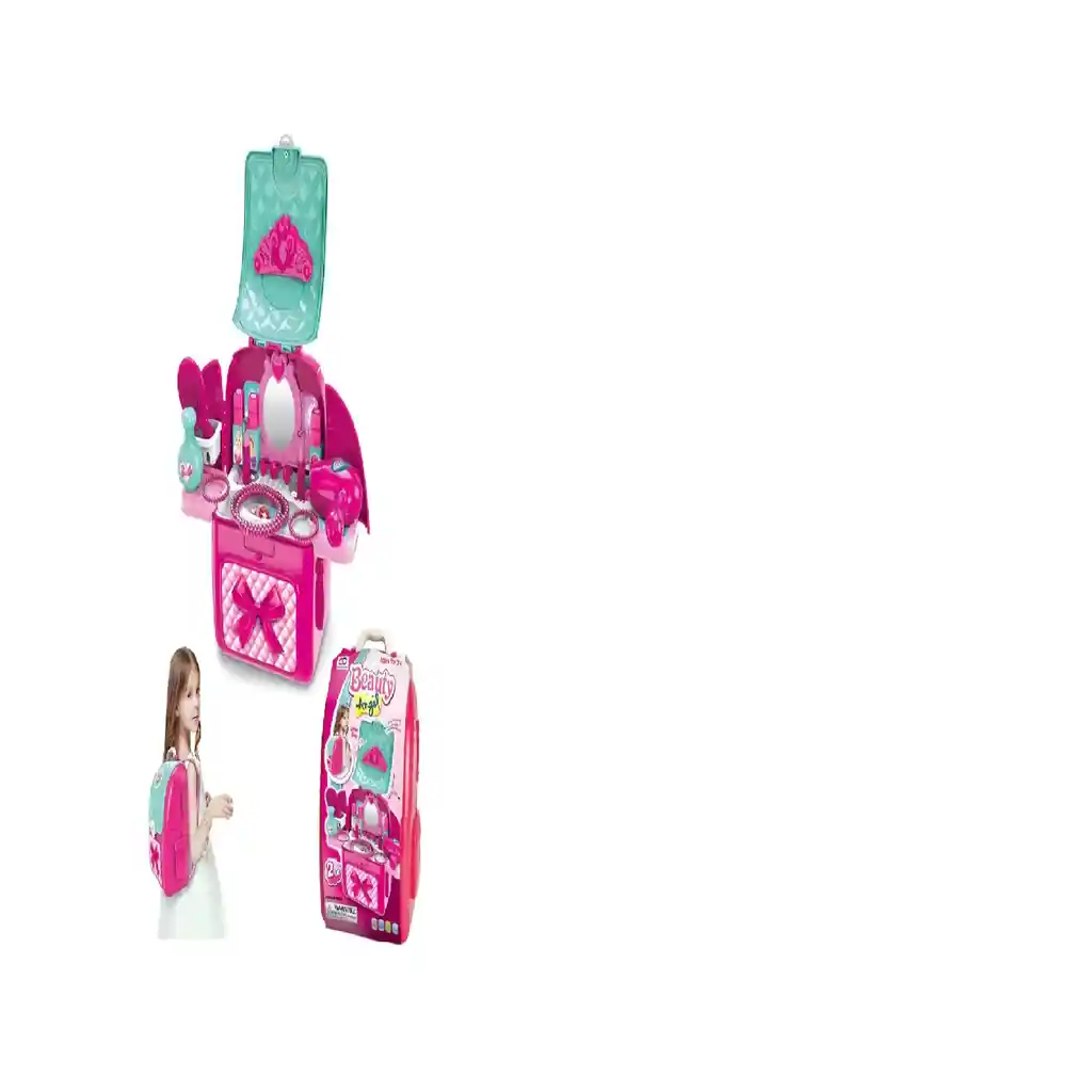 Es un juguete de rol que permite a las niñas simular que se maquillan y peinan. El set incluye varios accesorios como un secador de pelo, peine, joyas, y maquillaje de juguete.