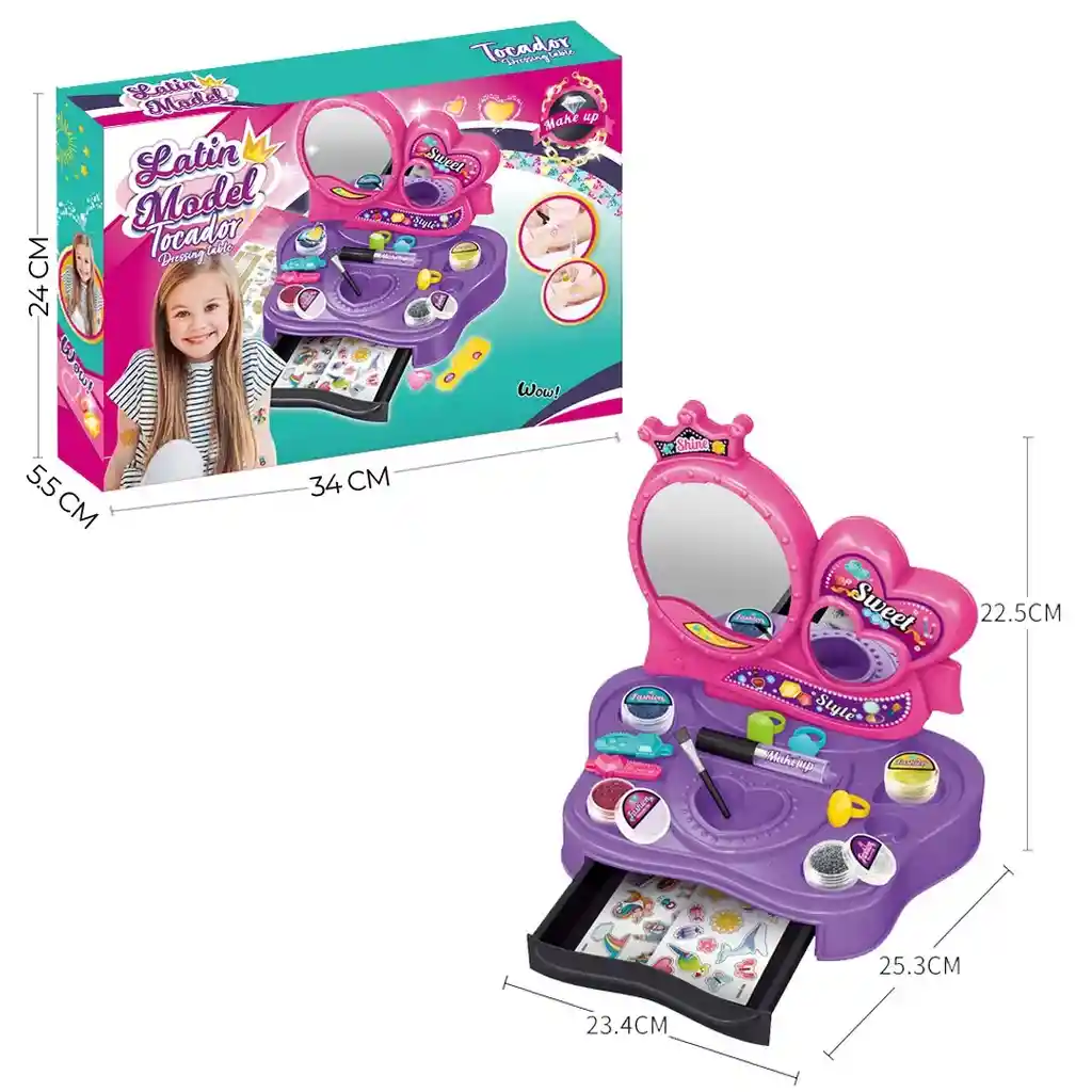 Set de belleza infantil con stickers y accesorios Set de belleza infantil con stickers y accesorios. Las niñas podrán explorar un maravilloso mundo totalmente nuevo en decoración y arreglo personal. Ayuda a fomentar la imaginación y el desarrollo artístico y cultural de los más pequeños, acompañados por horas de diversión. Permite fortalecer los lazos con sus amigos y familiares sin dejar de lado la diversión. Latin Model es una marca diseñada pensando en las necesidades de exploración de las niñas, con componentes que no causan ningún tipo de alteraciones en la piel, ya que se encuentran avalado bajo el registro INVIMA, brindándole a los padres tranquilidad y protección. Soporte en línea 24/7. Los productos están garantizados por defecto de materiales y mano de obra por un período de 30 días.