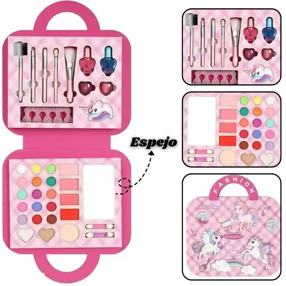 Set de belleza Kit De Maquillaje Infantil X36 Piezas Pony Deja volar la imaginación y creatividad de tu pequeña con el Set de Maquillaje Shining Makeup. Este no es solo un juguete, es una experiencia completa de belleza diseñada especialmente para niñas. Presentado en una hermosa maleta que hará que se sienta como toda una profesional. Al abrirla, se desplegará un mundo de posibilidades: - Bandejas mostrando una increíble variedad de sombras,labiales y un set para decorar sus uñas. Es perfecto para tardes de juego con amigas, fiestas de pijamas o simplemente para divertirse en casa. Características: - Fórmula Segura y Lavable: Este set de maquillaje es suave con la piel delicada de las más pequeñas, y se retira fácilmente con agua y jabón. - Organización Práctica: Cuenta con compartimentos para una mejor organización y un espejo real incorporado, enseñándole a cuidar y ordenar sus tesoros. - Variedad Increíble: Con 36 piezas, ofrece infinitas combinaciones de colores para ojos, labiales, brochas y más. NOTA: * Las imágenes publicadas son de referencia, el producto real puede presentar ligeras variaciones en su tonalidad de color. Contenido de la Caja - 1 Estuche con asa y espejo interior. - Paleta de sombras en polvo - 2 Brillo labial - 2 Esmaltes de uñas (Enviados en colores aleatorios) - Separador de dedos para pedicura. - Lima de uñas - 5 Brochas de maquillaje (Para diferente función).