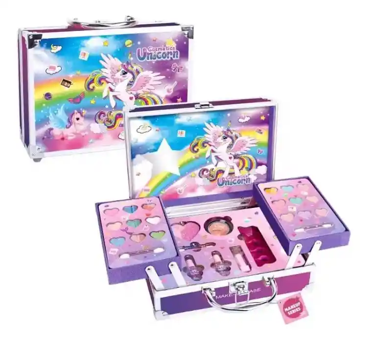 Set de maquillaje infantil lavable, seguro y no irritante. Este set contienen diferentes accesorios con los que los niños pueden jugar para mejorar su creatividad y sus habilidades estéticas. Es facil de limpiar. Este kit de maquillaje es el juguete perfecto, podran pasar muchas horas de diversión y se probarán varios maquillajes y estilos. Contiene lápiz labial, rubor, sombra de ojos, brocha de maquillaje, esmalte de uñas, herramientas de decoración de uñas, entre otros...