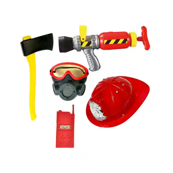 Set de Bomberos Incluye: Casco 1 Und + Hacha 1 Und + Gafas 1 Und + Radio 1 Und + Accesorio 1 Und.