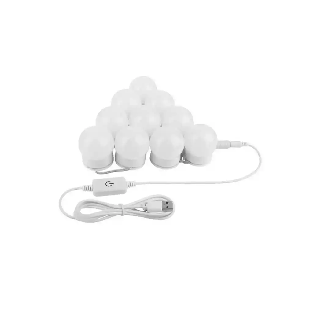 1 Set de bombillos Vanity Mirror luz led Los tres tipos de luz en una sola extencion es Espectacular . 10 bombillos que puedes adaptar a tu espejo . 110 v. Tiene 3 colores en cada kit blanco calido, blanco natural y blanco. No se requiere herramientas con la cinta adhesiva de doble cara puede afirmar las luces . Cada kit contiene 10 bombillas led con su interrumptor el cual cambia de color segun desee con tres opciones de luz usted puede escoger por medio del interruptor la luz que desea , cable para toma usb , 10 ventosas y una poderosa cinta doble faz