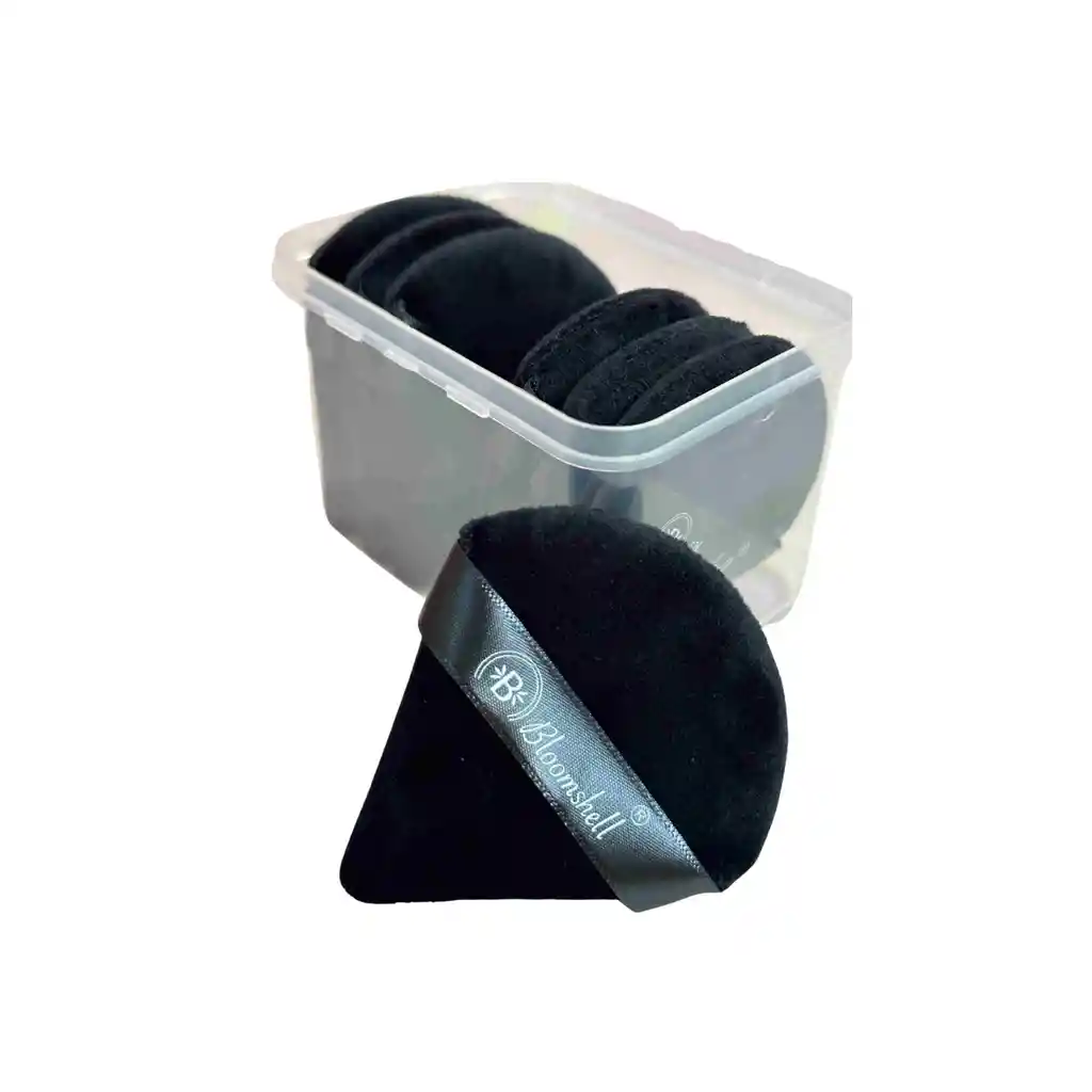 Set x7 unidades de borla con forma triangular, fabricada en terciopelo ultra suave. Viene en el tamaño perfecto para alcanzar desde las áreas más pequeñas del rostro hasta las más grandes. Es ideal para utilizar con polvo suelto y compacto. Disponible en color negro o vainilla.