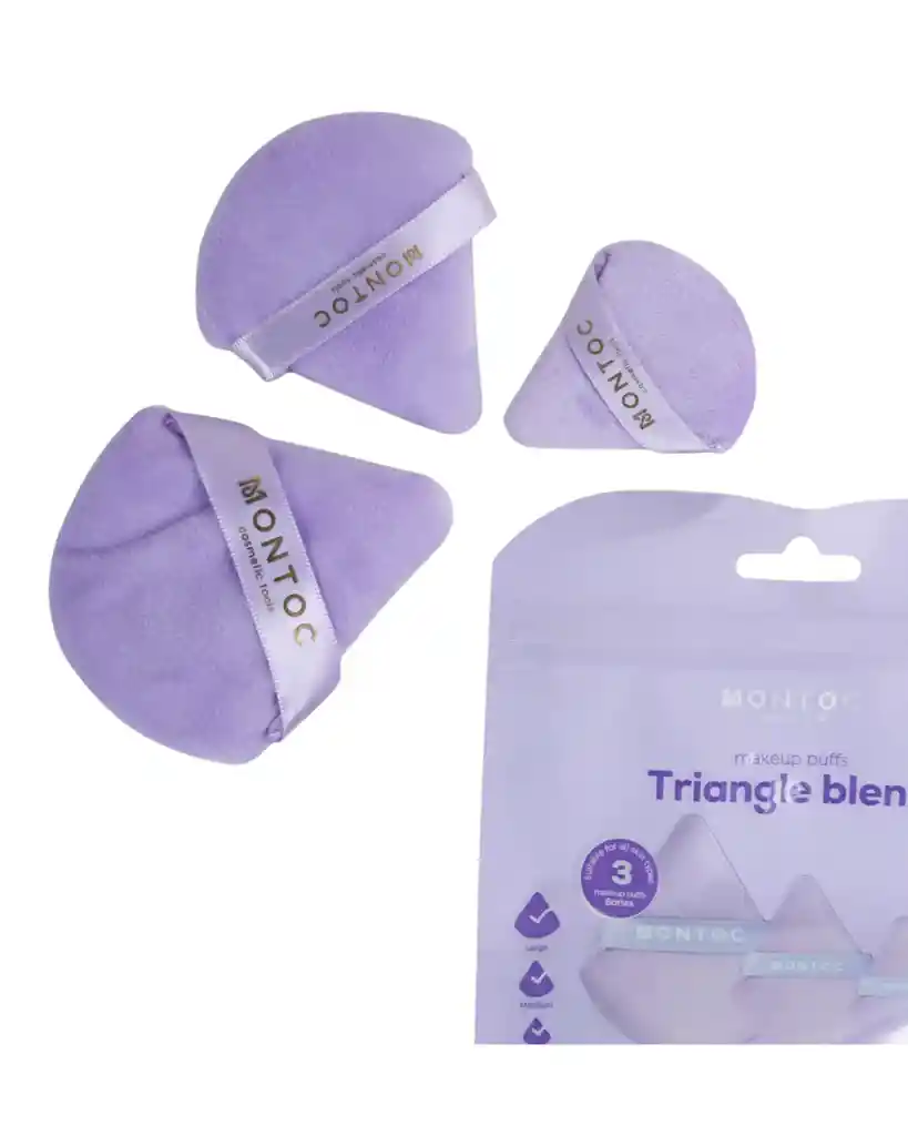 El Set de borlas triangulares es un set de tres borlas triangulares para maquillaje en tamaños grande, mediano y pequeño. Están pensadas para aplicar y sellar polvos sueltos o compactos con precisión y acabado uniforme. Su forma facilita llegar a cada ángulo del rostro, logrando un sellado limpio y profesional sin dejar marcas ni exceso de producto. Qué debes tener presente Incluye tres borlas triangulares de diferentes tamaños Perfectas para aplicar polvo en zonas amplias o detalladas del rostro Ideales para sellar base, corrector o contorno sin alterar la textura de la piel