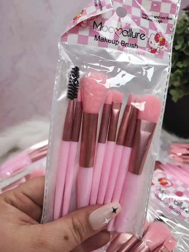 Aquí tienes la descripción y características de este set de belleza: ✨ Kit de Brochas de Maquillaje Mocallure (8 piezas) Este set de brochas combina un diseño encantador con la funcionalidad necesaria para lograr un maquillaje completo y profesional en cualquier lugar. Características Principales Variedad Esencial: El kit incluye 8 piezas fundamentales para la aplicación de polvos, sombras, delineado y el peinado de cejas o pestañas. Diseño Estético: Cuenta con mangos de color rosa suave, férulas en tono oro rosa y cerdas sintéticas combinadas en rosa y negro. Calidad de las Cerdas: Las fibras están diseñadas para ser suaves al tacto pero lo suficientemente resistentes para una aplicación precisa ("Smooth and not firm, soft and tough"). Portabilidad: Viene en un empaque plástico compacto y reutilizable, ideal para llevar en el bolso o de viaje sin maltratar las cerdas. Versatilidad: Incluye brochas de diferentes formas y tamaños, desde una brocha amplia para rubor hasta pinceles finos para detalles y un cepillo tipo spoolie.
