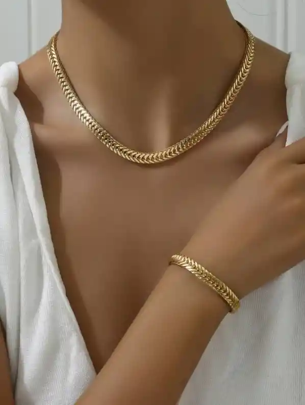 📿 Cadena tipo eslabón estilo cubano 💛 Pulsera a juego en color dorado ✨ Diseño clásico y elegante 👗 Ideal para usar juntos o por separado 👌 Acabado brillante y cómodo de llevar 🔒 Cierre seguro