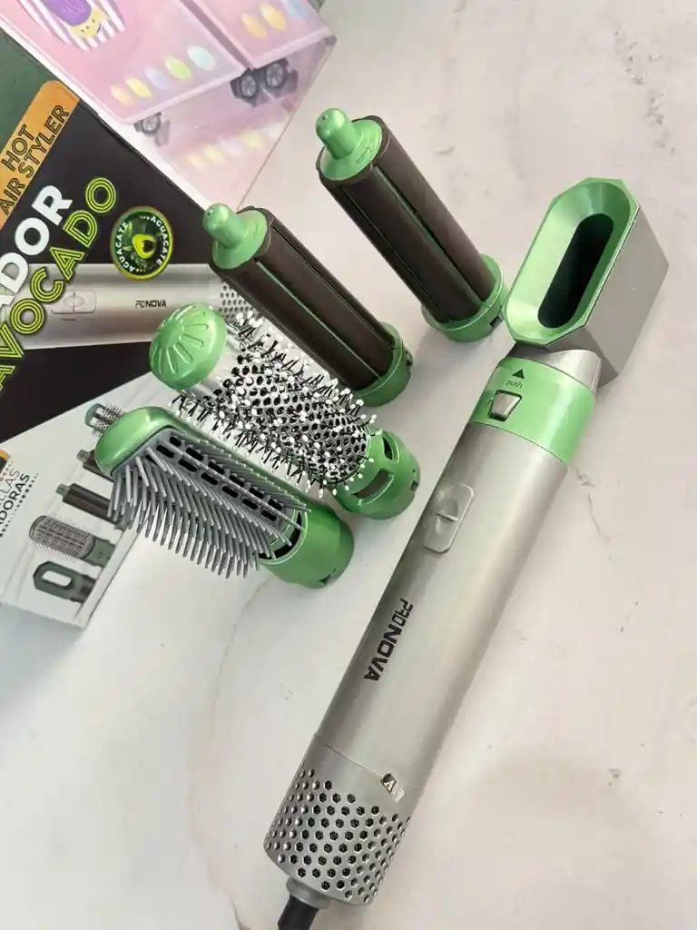 ¡Luce un cabello espectacular todos los días! Con el Set Moldeador Avocado 5 en 1 transforma tu rutina de peinado en minutos. - Tecnología con efecto antiestático y protección capilar premium. - Diseño inspirado en el aguacate, para cuidar tu cabello mientras lo moldeas. - Incluye 5 accesorios intercambiables para alisar, ondular, dar volumen y más. - Interruptor con 4 posiciones: 0-1-2-3 - Indicador de encendido - Protección de sobrecalentamiento - Colgante - Cable giratorio - 50-60Hz - Potencia: 1000w