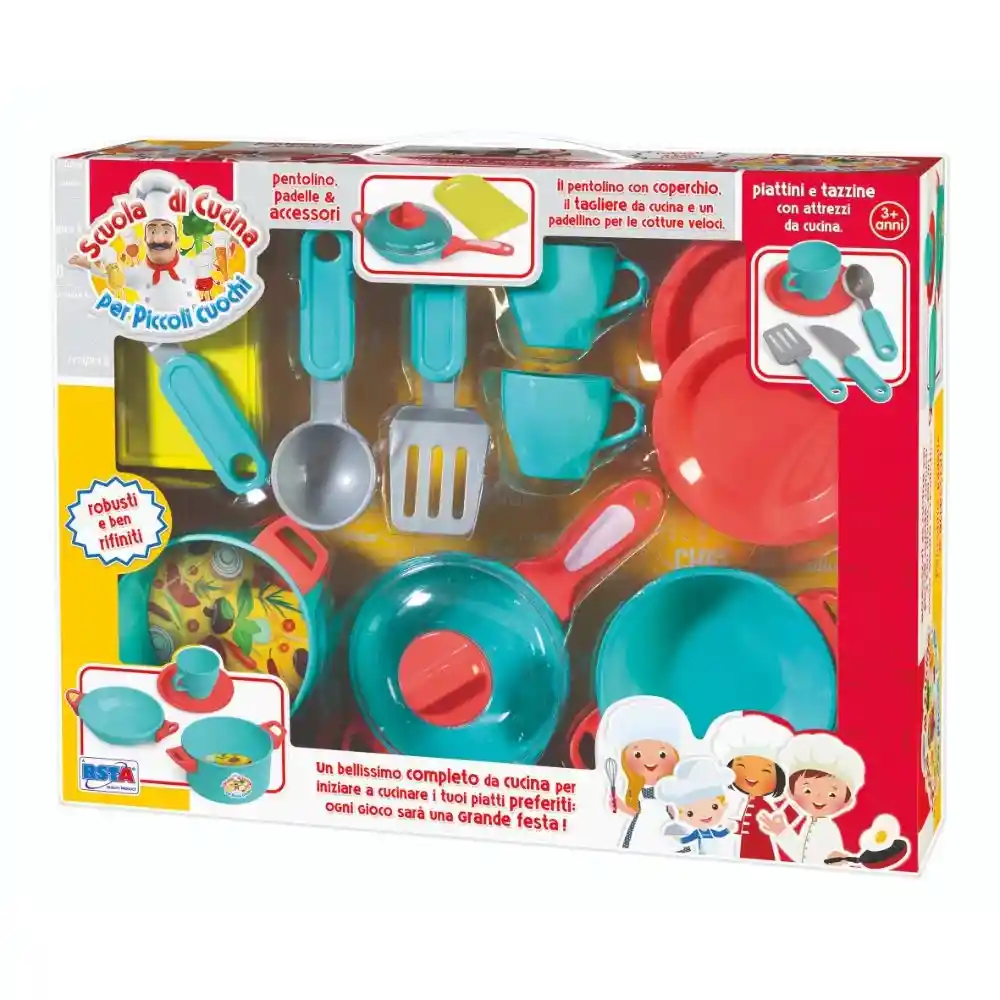 Ideal como juego de roles, como cocinero, chef, mesero, restaurante o tarde de té. Piezas grandes y de buena calidad.