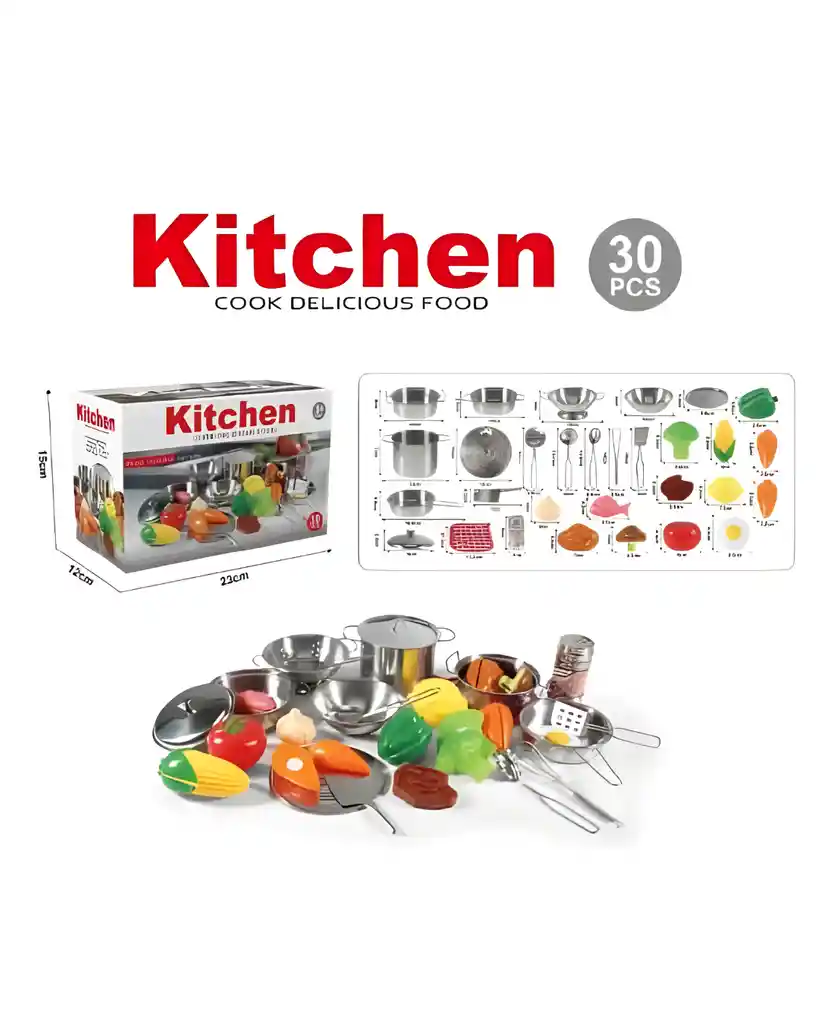¡Despierta la imaginación de los pequeños chefs! Este completo set de cocina está diseñado para fomentar el juego simbólico, la coordinación motriz y la interacción social desde temprana edad. Características destacadas: • Incluye 25 piezas: ollas, sartenes, espátulas, vegetales y más accesorios de cocina. • Material seguro y no tóxico: ideal para niños a partir de 3 años. • Diseño interactivo: estimula el juego en grupo y el aprendizaje por imitación. • Dimensiones del empaque: 23 cm (largo) x 12 cm (ancho) x 15 cm (alto). • Ideal para el desarrollo infantil: promueve habilidades cognitivas, emocionales y sociales. Beneficios educativos: • Refuerza la creatividad y el pensamiento lógico. • Mejora la motricidad fina al manipular utensilios pequeños. • Fomenta el juego de roles, clave en el desarrollo emocional. • Compatible con enfoques Montessori y de aprendizaje activo.