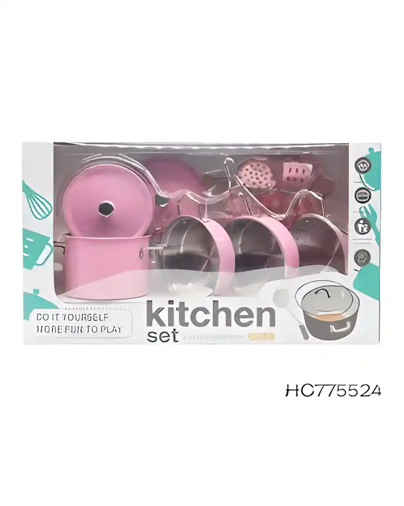 ¡Cocinar nunca fue tan divertido! Este set de cocina infantil con diseño en tonos rosados incluye utensilios realistas como ollas, sartén, colador, hervidor y más, todo presentado en una caja llamativa que invita al juego simbólico y al desarrollo de habilidades esenciales. Beneficios Clave: • Juego Imaginativo Guiado: El empaque con ilustraciones y frases motivadoras estimula la creatividad desde el primer vistazo. • Motricidad Fina y Coordinación: Manipular utensilios variados fortalece la destreza manual y la precisión. • Aprendizaje Práctico: Introduce conceptos básicos de cocina y organización de forma lúdica. • Presentación Ideal para Regalo: Caja con diseño atractivo y código de producto visible para fácil identificación en tiendas. • Compatible con Enfoques Montessori: Promueve independencia, orden y exploración sensorial. Ideal Para: • Niñas y niños entre 2 y 6 años • Regalos educativos y creativos