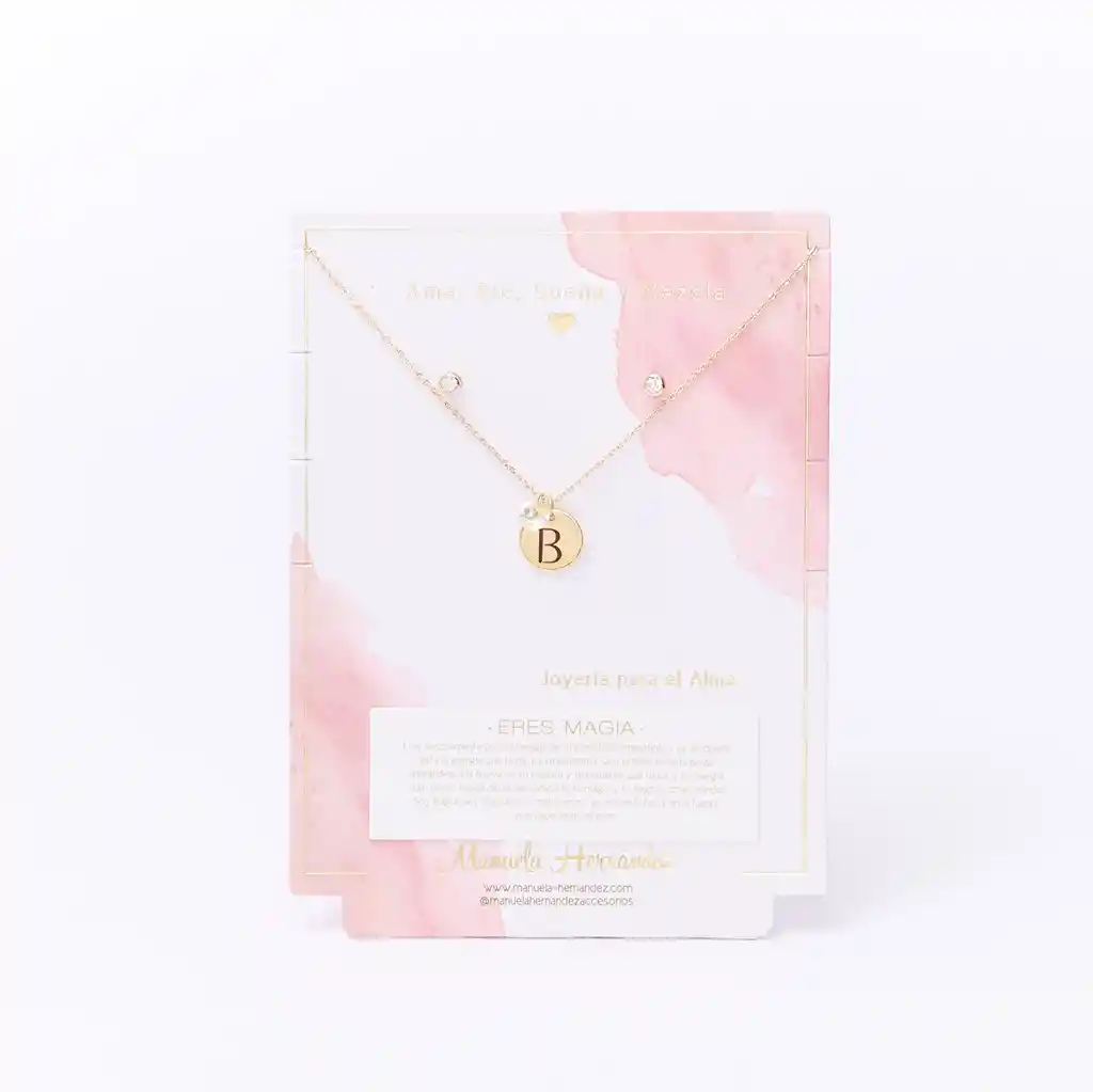 La cadena y los apliques dorados cuentan con Baño de Oro 18k. Elaborado con Cristales Swarovski. Longitud: 45 cm. Incluye Collar y Aretes.