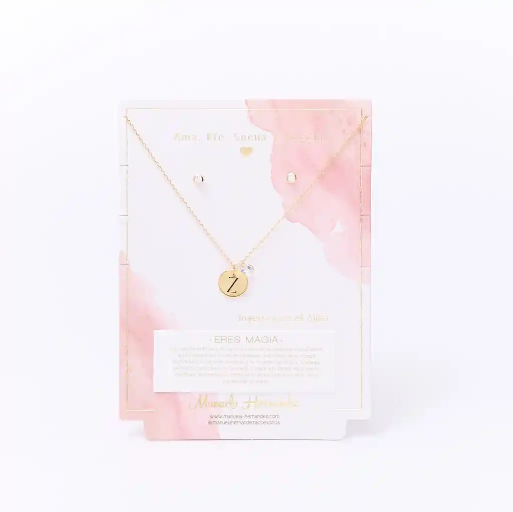 Set De Collar Y Aretes De Inicial Medallon Z