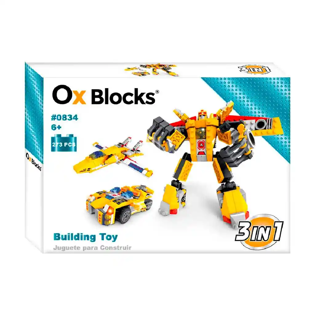 Empaque de regalo y tarjeta sin costo adicional, escríbenos al finalizar la compra. 6 años+ ¡Descubre la versatilidad del fascinante Set de Bloques 3 en 1! Con 273 piezas, este set ofrece la emoción de armar un avión, un carro o un robot, brindando a los niños la oportunidad de explorar su creatividad y construir tres emocionantes opciones. Diseñado para niños mayores de 6 años, este set está fabricado con materiales no tóxicos, priorizando la seguridad de los pequeños y ofreciendo una calidad excepcional en su manejo y durabilidad. Su diseño inteligente proporciona una experiencia cómoda y placentera, promoviendo tanto la imaginación como el desarrollo cognitivo y las habilidades motoras de los niños. Las instrucciones en español facilitan el proceso de armado, garantizando que los pequeños disfruten de cada paso mientras crean sus propias creaciones. Compatible con marcas líderes, este set es una invitación para jugar, aprender y desarrollar habilidades mientras los niños se sumergen en la diversión de la construcción. ¡Haz tu pedido en línea y acompaña a los pequeños en su viaje de aprendizaje y entretenimiento con este emocionante set de bloques! Tamaño: 35 x 25 x 5cm