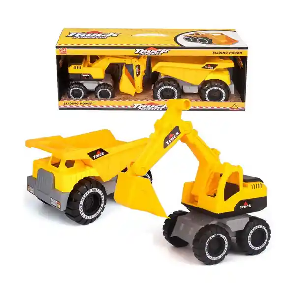 Set de Construcción Incluye: Volqueta 1 Und + Retroexcavadora 1 Und