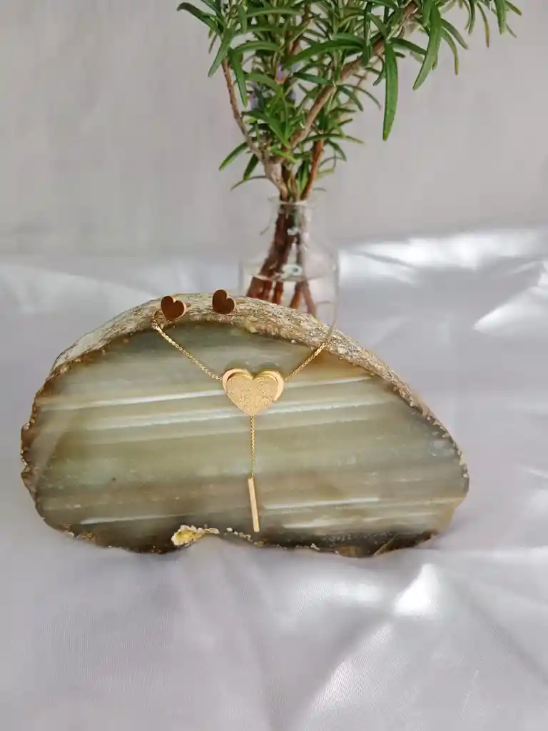Set de corazon en acero ,el corazón representa el amor divino, pero se utiliza también para expresar sentimientos de amistad y cariño. viene en caja de lujo de carton kraft