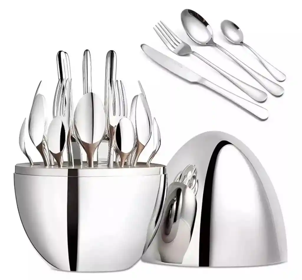 Descubre la sofisticación en cada comida con nuestro Juego de Cubiertos de 24 piezas. Este exquisito set incluye 6 cuchillos, 6 tenedores, 6 cucharas y 6 cucharaditas de café, todos presentados en un elegante estuche dorado de acero inoxidable con acabado espejo pulido. Ideal para cualquier ocasión, desde cenas formales hasta comidas informales, este juego no solo cumple una función práctica, sino que también actúa como una pieza de arte en tu cocina. Características Principales: Juego Completo para 6 Personas: Este set de cubiertos de 24 piezas está diseñado para servir a 6 personas, incluyendo cuchillos afilados, tenedores robustos, cucharas versátiles y cucharaditas de café elegantes. Fabricado en acero inoxidable 410 de grado alimenticio, ofrece durabilidad y resistencia a la corrosión. Diseño Ergonómico y Funcional: La hoja de sierra en el borde de los cuchillos está diseñada para cortar con facilidad, mientras que la curva ergonómica de cada pieza asegura una experiencia de uso cómoda. Ideal para una variedad de alimentos, desde carnes hasta postres, estos cubiertos están meticulosamente pulidos y fabricados para un rendimiento óptimo. Estuche de Almacenamiento Elegante: El estuche dorado no solo proporciona un almacenamiento seguro, sino que también cuenta con una ranura integrada para el drenaje, manteniendo los cubiertos secos y libres de bacterias. Este estuche es una verdadera obra de arte, que combina funcionalidad con estilo. Fácil Cuidado y Mantenimiento: Apto para lavavajillas, el juego de cubiertos se limpia fácilmente y mantiene su brillo sin mancharse ni oxidarse. Sin embargo, para preservar su apariencia impecable, se recomienda usar el lavavajillas con moderación. Regalo de Alta Gama: Presentado en una caja de regalo de alta gama, este juego de cubiertos es perfecto para ocasiones especiales como cumpleaños, aniversarios y celebraciones festivas. Su versatilidad y elegancia lo convierten en un regalo memorable para amigos y familiares. Lo que obtienes en la compra: 1 x Juego de cubiertos moderno de 24 piezas 1 x Estuche forma de huevo