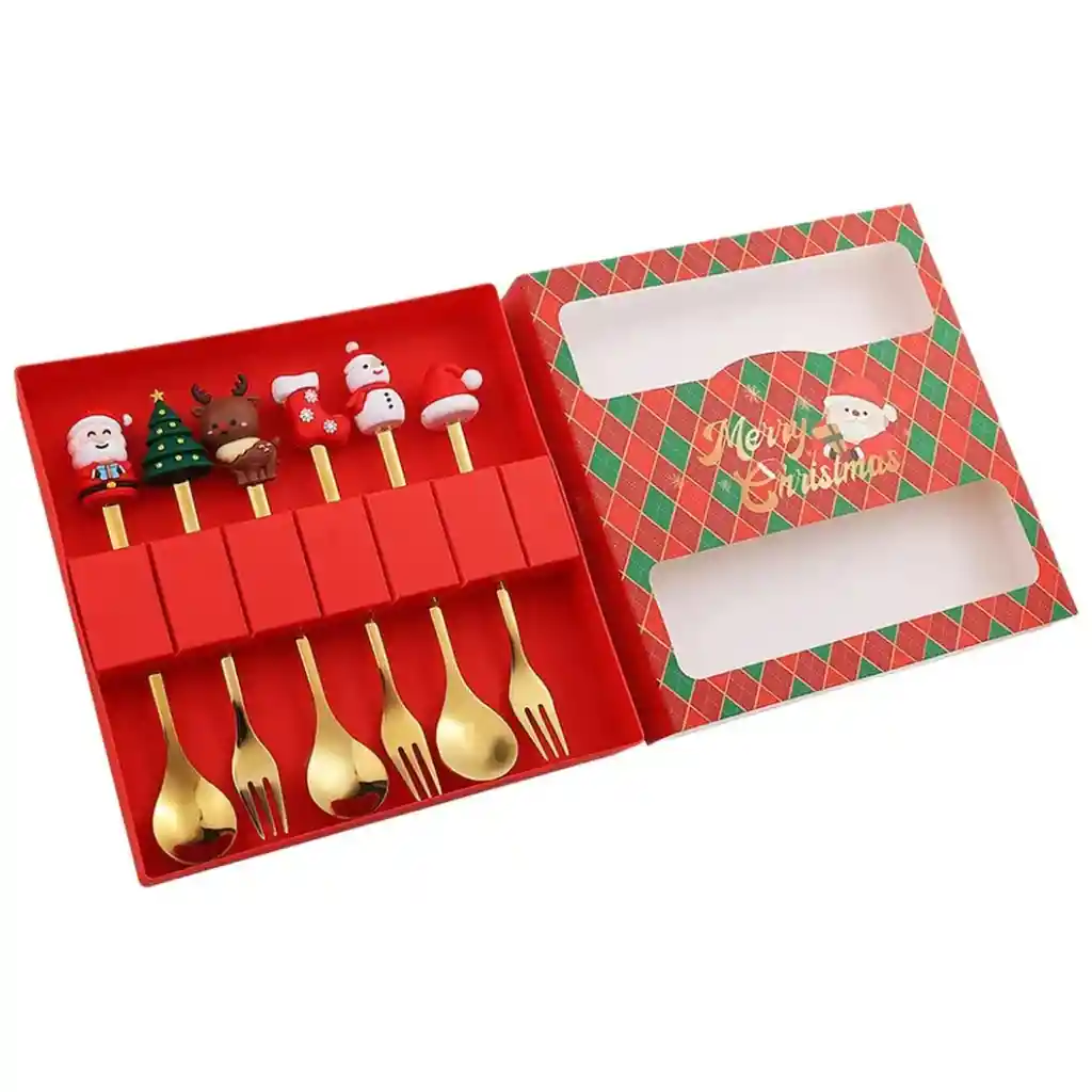 Set Navideño de Cubiertos en Acero Inoxidable: Estilo, Calidad y Detalle Festivo Este set de cubiertos navideños de 6 piezas está creado para quienes desean agregar un toque decorativo y funcional a su mesa durante la temporada de fin de año. Elaborados en acero inoxidable resistente, presentan un acabado suave, pulido y con detalles navideños que armonizan con cualquier vajilla o decoración temática. Su diseño compacto y liviano permite un uso cómodo en reuniones familiares, cenas especiales o desayunos festivos. Las cucharas pequeñas son ideales para bebidas calientes, yogures, natillas, postres y recetas individuales. Los tenedores pequeños ofrecen un manejo práctico para frutas, entradas ligeras, quesos, picadas y aperitivos. Gracias a la calidad del material, las piezas se mantienen libres de óxido, conservan su brillo y no absorben olores ni sabores. Viene en una caja firme de 18,2 x 18 x 2,5 cm, lista para entregar como regalo o para conservar en buen estado durante todo el año. Es una opción ideal para detalles empresariales, intercambios navideños o para decorar la mesa de manera elegante y funcional. Especificaciones Material de fabricación: Acero inoxidable Piezas: 3 cucharas + 3 tenedores Uso recomendado: Bebidas, postres, snacks, frutas, aperitivos Embalaje: Caja rígida decorativa Tamaño del empaque: 18,2 cm x 18 cm x 2,5 cm Acabado: Pulido fino Peso aproximado: 210 g Garantía Incluye 30 días de garantía por defectos de fábrica, cubriendo fallas estructurales o materiales defectuosos. Retracto de Compra Dispones de 5 días hábiles desde la recepción del producto para solicitar retracto según las políticas vigentes.