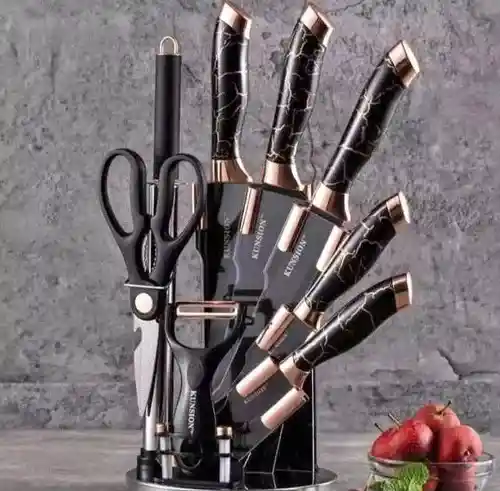 Pelador: cuchilla de cerámica, afilada y suave, fácil de despegar la caspa del melón y la fruta -- Portacuchillos: se utiliza para colocar cuchillos -- Cuchillo de fruta: pequeño y ligero, adecuado para tallado fino, pelado de frutas y eliminación de núcleos. -- Cuchillo complementario para alimentos: hoja extendida, fácil de hacer alimentos complementarios, adecuado para cortar verduras pequeñas, rebanadas de carne magra -- Cuchillo para pan: hoja afilada, superficie de corte suave, sin escoria de las rebanadas de pan -- Cuchillo de cocina: cuchillo de cocina profesional, para cortar salmón, sushi, sashimi, etc., los ingredientes son regulares y ordenados, y el tamaño es controlable -- Cuchillo de chef: Cuchillo de chef profesional, corta verduras y carne más rápido y ahorra más trabajo, adecuado para cortar con una variedad de ingredientes, verduras frescas Especificación: Nombre: Juego de cuchillos de cocina de acero inoxidable para el hogar Material: acero inoxidable 5Cr15 Tamaño del paquete: 35,8 cm * 15,5 cm * 14cm Tamaño del cuchillo: como se muestra Colores: Blanco/negro