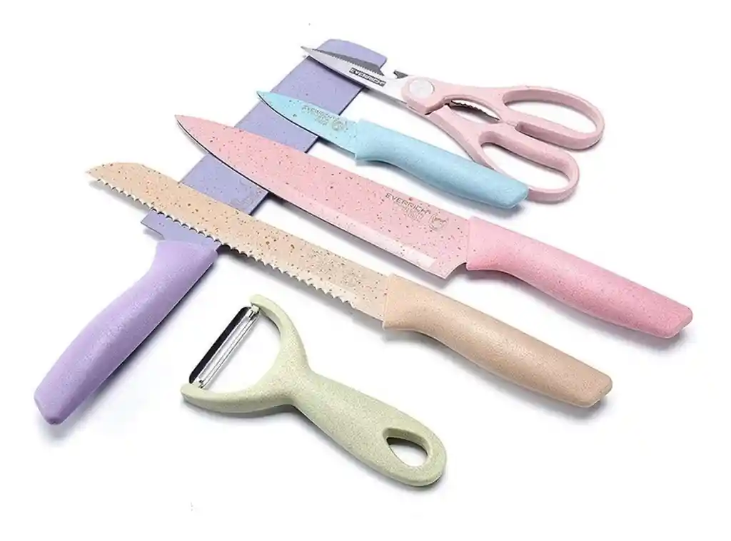 Kit de cuchillos de acero inoxidable con recubrimiento cerámico estilo japonés - Set de cuchillos de cocina color pastel - Hechos de acero y cubierta de cerámica. - Hecho con un excelente material profesional. - 6PCS