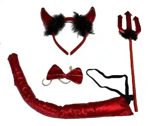 Set de Diabla color rojo: Diadema, Corbatín, Cola, Tridente Rojo