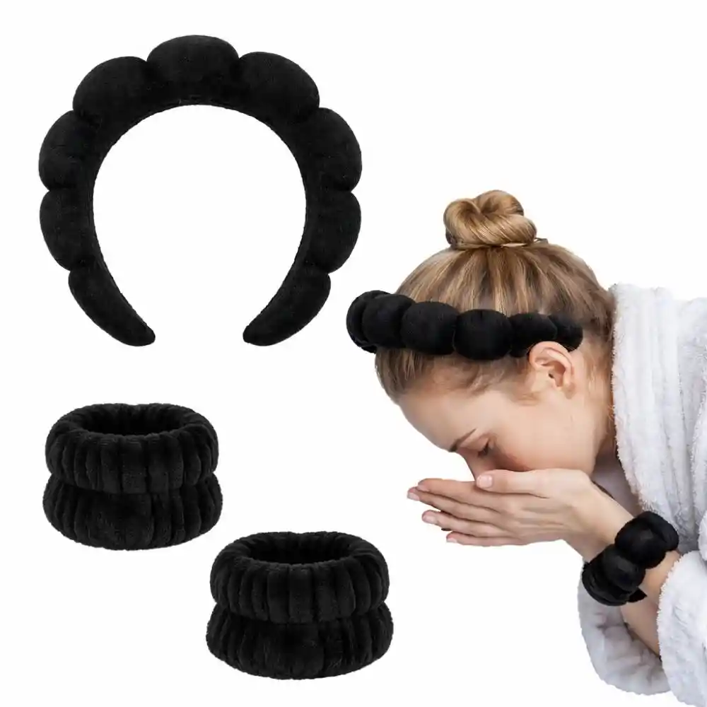 Balaca Acolchada Puffy para Skincare – Suave, Cómoda y Elegante Incluye: 1 balaca acolchada y 1 par de muñequeras en color negro. Disfruta de tu rutina de cuidado facial con total comodidad gracias a esta balaca acolchada para skincare, diseñada para mantener el cabello perfectamente recogido mientras aplicas tus productos favoritos. Su textura suave y esponjosa es ideal para uso diario, maquillaje, limpieza facial, mascarillas, spa en casa o tratamientos de belleza. No aprieta, no maltrata el cabello y se adapta cómodamente a diferentes tamaños de cabeza. Características principales: - Material suave y acolchado, agradable al tacto - Diseño ergonómico tipo burbuja - No deja marcas ni genera presión - Ideal para skincare, maquillaje y rutinas de belleza - Fácil de lavar y de secado rápido - Apta para todo tipo de cabello Un accesorio imprescindible para tu rutina diaria de belleza. Compra ahora y eleva tu experiencia de skincare con comodidad y estilo. En Lifeglow Store, iluminamos tu vida con productos que inspiran y potencian tu bienestar.