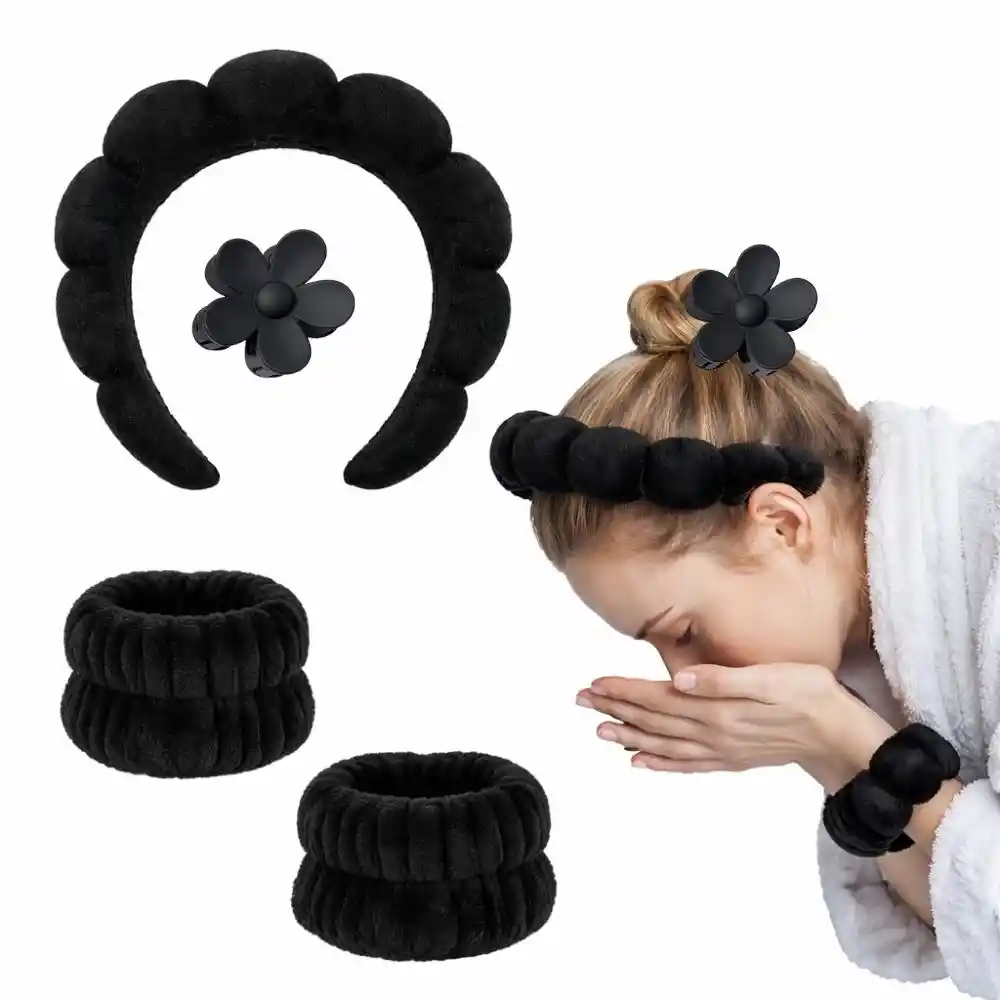 Set de Balaca Acolchada Puffy para Skincare – Suave, Cómoda y Elegante Incluye: 1 set de balaca acolchada, muñequeras antigoteo y caimán en color negro. Disfruta de tu rutina de cuidado facial con total comodidad gracias a esta balaca acolchada para skincare, diseñada para mantener el cabello perfectamente recogido mientras aplicas tus productos favoritos. Su textura suave y esponjosa es ideal para uso diario, maquillaje, limpieza facial, mascarillas, spa en casa o tratamientos de belleza. No aprieta, no maltrata el cabello y se adapta cómodamente a diferentes tamaños de cabeza. Características principales: - Material suave y acolchado, agradable al tacto - Diseño ergonómico tipo burbuja - No deja marcas ni genera presión - Ideal para skincare, maquillaje y rutinas de belleza - Fácil de lavar y de secado rápido - Apta para todo tipo de cabello Un accesorio imprescindible para tu rutina diaria de belleza. Compra ahora y eleva tu experiencia de skincare con comodidad y estilo. En Lifeglow Store, iluminamos tu vida con productos que inspiran y potencian tu bienestar.