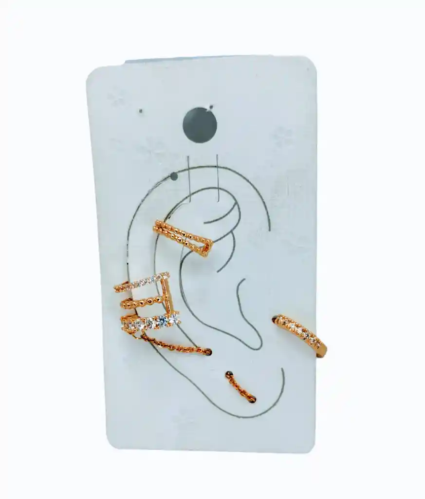 Este set de earcuffs dorados es la opción ideal para quienes buscan añadir un toque de sofisticación y brillo a su estilo. Con su diseño cómodo y ajustable, estos earcuffs son fáciles de colocar y permanecen en su lugar sin necesidad de perforaciones adicionales. Su versatilidad y estilo atemporal los convierten en un accesorio esencial para cualquier amante de la moda que desee añadir un toque de brillo y sofisticación a su colección de joyería.