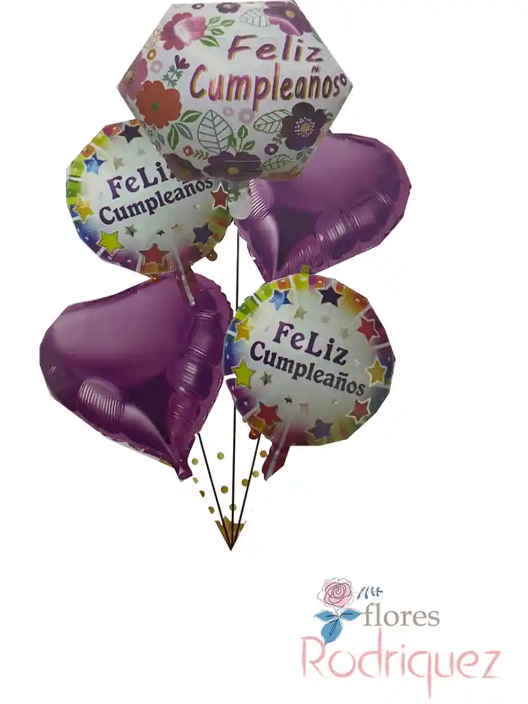 complementa tu obsequia con un hermoso set de globo de feliz cumpleaños metalizado sin helio contiene: 3 globos con la frase feliz cumpleaños, 2 globos de corazón morado