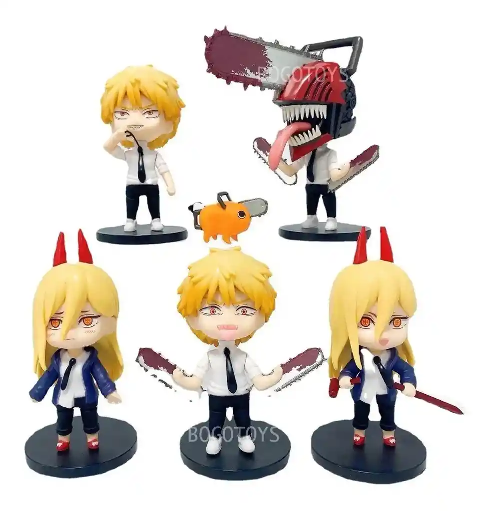 Increíble colección inspirada en el popular anime, ideal para fans que desean tener a sus personajes favoritos en versión miniatura. Incluye personajes como: Denji Power Makima Aki Hayakawa Versión especial de Chainsaw Man 🔹 Características: Set x5 figuras coleccionables. Diseño detallado inspirado en el anime. Colores llamativos y buenos acabados. Material resistente y duradero. Tamaño ideal para escritorio, repisa o vitrina. Base incluida (según modelo). 🎁 Perfecto para regalo o para ampliar tu colección con los personajes más impactantes de Chainsaw Man.