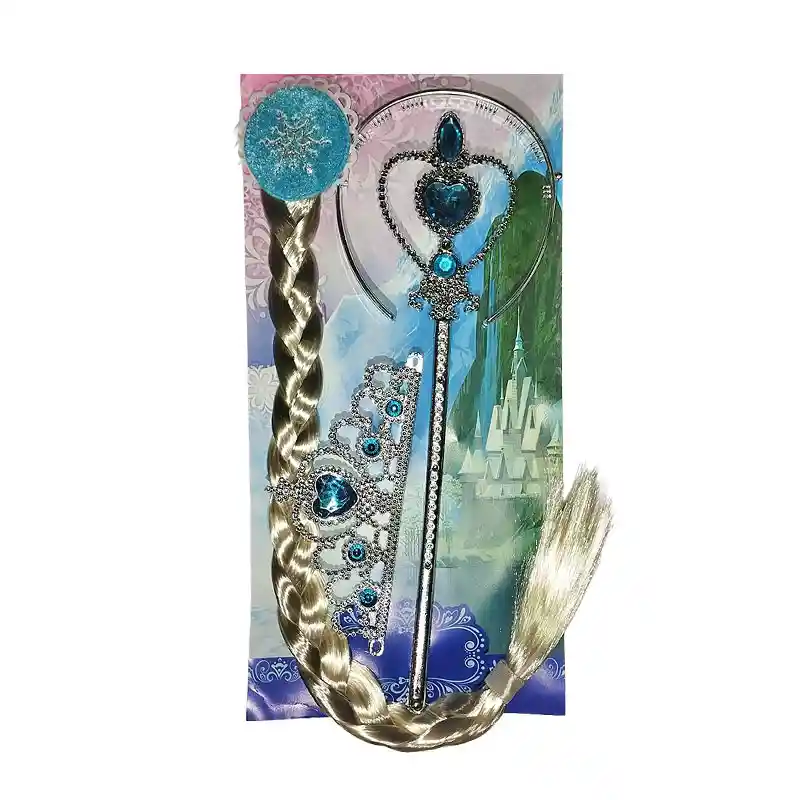 Set de frozen, diadema corona, barita y extensión en trensas