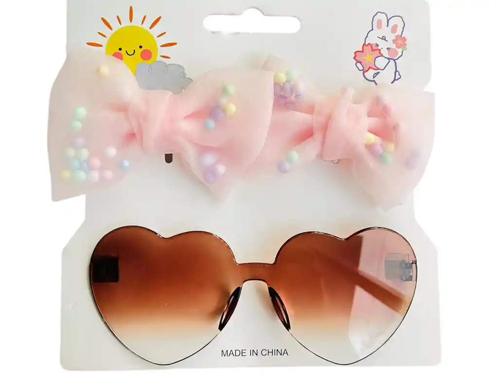 SET DE GAFAS Y GANCHO CORBATIN DE NIÑA ROSA