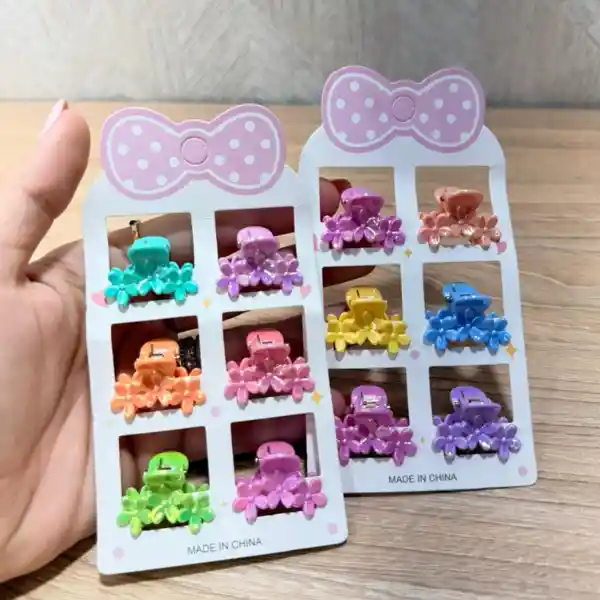 🌼 Hermosos ganchos que le dan un toque tierno y colorido a tu peinado. 🎨 Incluye varios colores brillantes y llamativos para combinar con cualquier outfit. 💇♀️ Perfectos para sujetar mechones de cabello con estilo y comodidad. ✨ Acabado brillante tipo nacarado que resalta aún más su diseño. 🌈 Ideales para niñas o para looks dulces y femeninos. 👜 Tamaño práctico, fáciles de llevar en bolso o cosmetiquera. 🎁 Set variado perfecto para uso diario o para regalar.