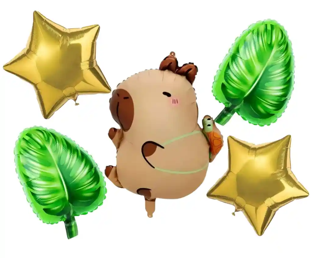Set De Globo Capibara, contiene: 1 Globo Metalizado Capibara 51*63 Cms, 2 Globo Metalizado Hoja verde, 2 Globo Metalizado Estrella 18", Lo Puedes Utilizar Para Cumpleaños, Happy Birthday, Decoraciones De Animales, Celebraciones, Fiestas Infantiles, Medellin